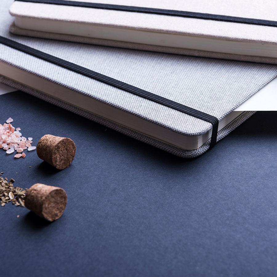 Эко-блокнот Обложка из натурального хлопка Твердый переплет Вертикальная nbsp;резинка Бумага белая Нелинованный блок 160 стр.