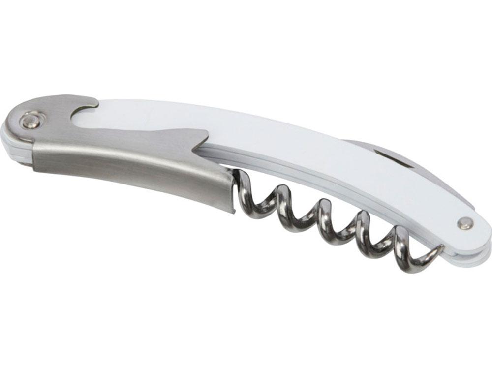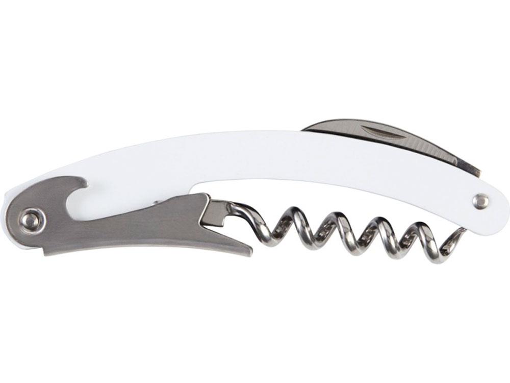 Складной нож из нержавеющей стали с цветным корпусом с обрезчиком для фольги и открывалкой для бутылок. Нержавеющая сталь.