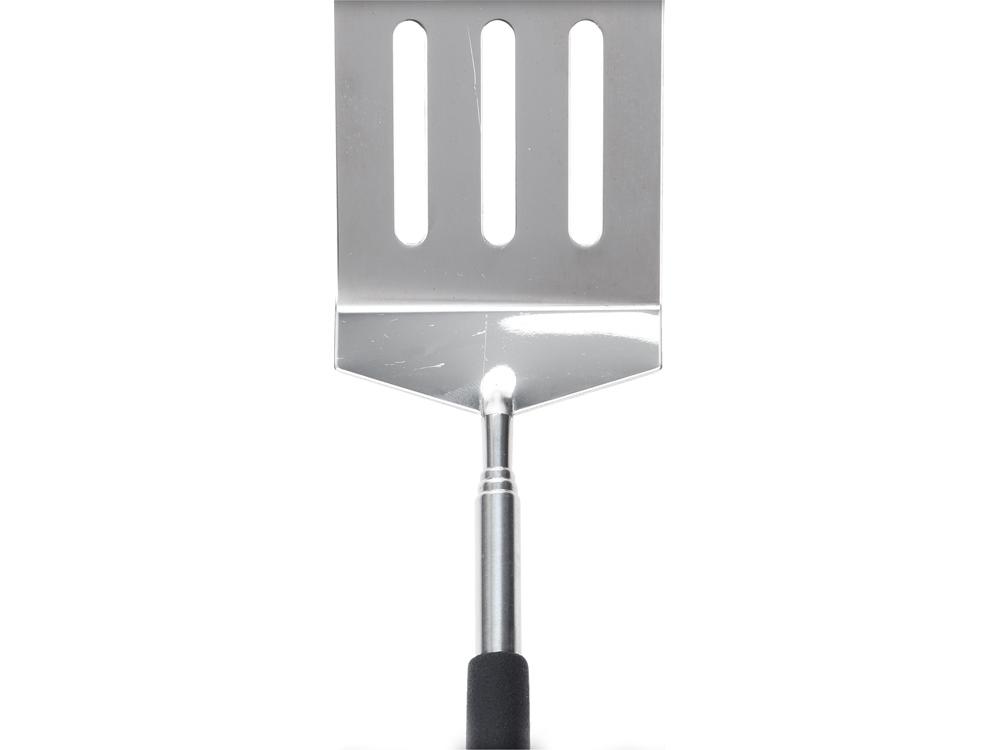 Удобная выдвижная лопатка для гриля изготовлена из нержавеющей стали высокого качества. Лопатка выдвигается на 60 см и имеет противоскользящую ручку из пластика. Весит всего 58 г - удобно брать с собой и легко пользоваться.