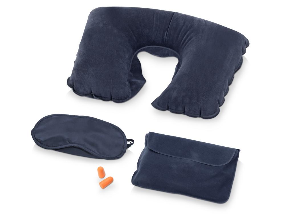 Замечательный дорожный набор включает в себя надувную подушку, маску на глаза и беруши, все это упаковано в специальный чехол. Приятная на ощупь поверхность набора обеспечит комфортный сон в любой обстановке.